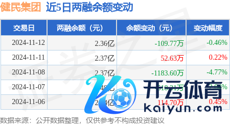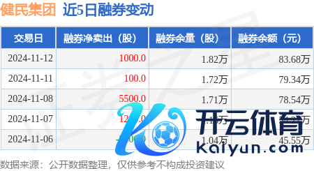 本站音问,11月12日,健民集团(600976)融资买入1661.94万元,融资偿还1776.05万元,融资净卖出114.11万元Kaiyun,融资余额2.35亿元。
