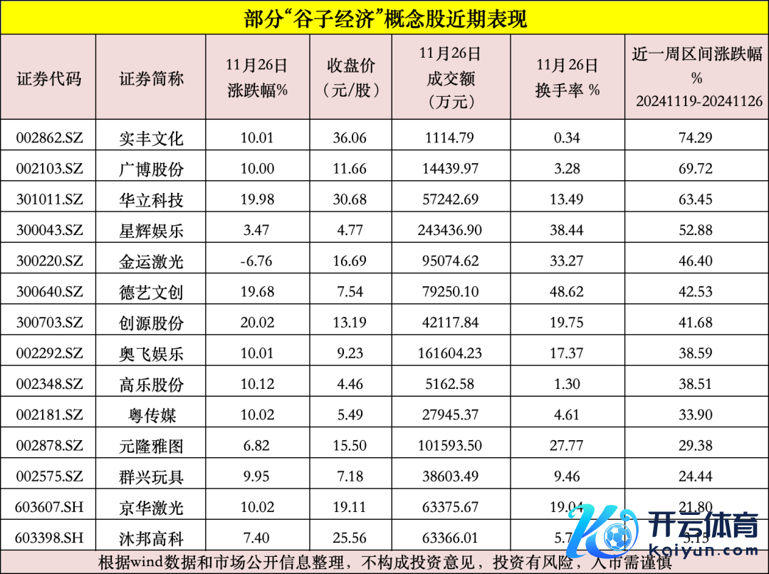 11月26日,“谷子经济”宗旨股持续大涨。辽远股份、实丰文化均出现一字涨停,且皆创出了五连板。