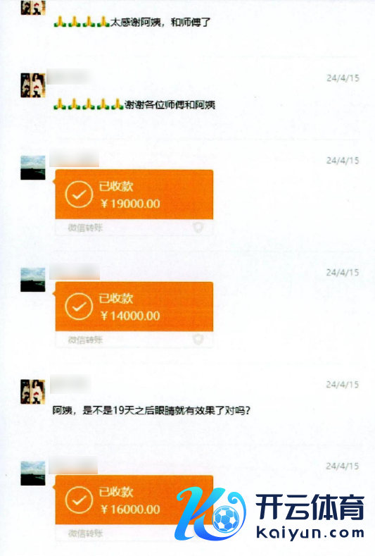 4月15日,张女士情怀不顺,认为我方“没看清东谈主”,便向祖某筹商“开天眼”的干系事宜。祖某谎称不错找九华山“师父”匡助她“开天眼”,通过“开天眼”即能看清一个东谈主的犀利,并称“开天眼”需要19天。于是,张女士又分三次通过微信支付了近5万元。