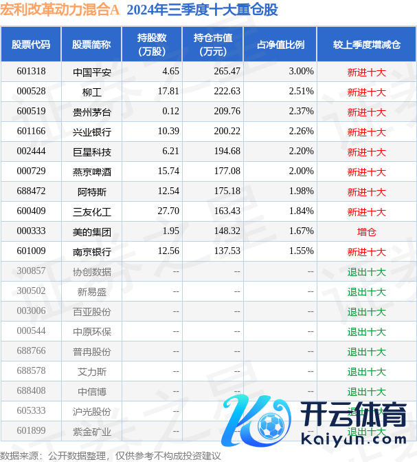 宏利改革能源搀杂A为搀杂型-生动基金,把柄最新一期基金季报泄漏,该基金金钱确立:股票占净值比92.68%,无债券类金钱,现款占净值比7.53%。基金十大重仓股如下: