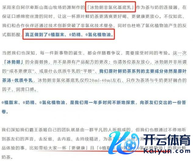 值得介意的是,霸王茶姬在其 2023 年 7 月 28 日官方微博账号中对于植脂末关系科普内容中也提到,在霸王茶姬原叶鲜奶茶系列中主要要素是原叶茶汤、优质牛乳和冰勃朗非氢化基底乳,冰勃朗含量约 20ml 至 40ml 傍边。"遴荐来自阿尔卑斯山峻岭牧场奶源制作的‘冰勃朗非氢化基底乳’行动茶与奶的陆续器,在保证口感绵密丝滑的同期,让这一杯原叶鲜奶茶更澄澈更好喝、更健康更坦然。"