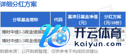 本站音问Kaiyun 中国官方认证,2月22日发布《博时裕泰纯债债券型证券投资基金分成公告》。本次分成为2025年度的第1次分成。公告清楚,本次分成的收益分拨基准日为2月2日,详备分成决策如下: 本次分成对象为权力登记日登记在册的本基金份额抓有东说念主,权力登记日为2月25日,现款红利披发日为2月27日。选用红利再投资样式的投资者所调治的基金份额将以2025年2月25日的基金份额净值为策画基准细目再投资份额,红利再投资所调治的基金份额于2025年2月26日平直划入其基金账户,2025年2月27